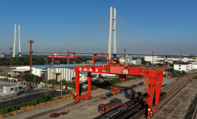 為破解長江三峽樞紐通航瓶頸,長江班列創(chuàng)新采用“翻壩運輸”模式,構(gòu)建“鐵路+水運”高效聯(lián)運體系。以本次運輸?shù)挠衩诪槔?,貨物從江蘇南通港經(jīng)水路運至九江港后,無縫換乘鐵路直達(dá)四川,全程運輸時間從傳統(tǒng)水路的25天大幅縮短至10-12天,為跨區(qū)域大宗貨物運輸按下“加速鍵”。
