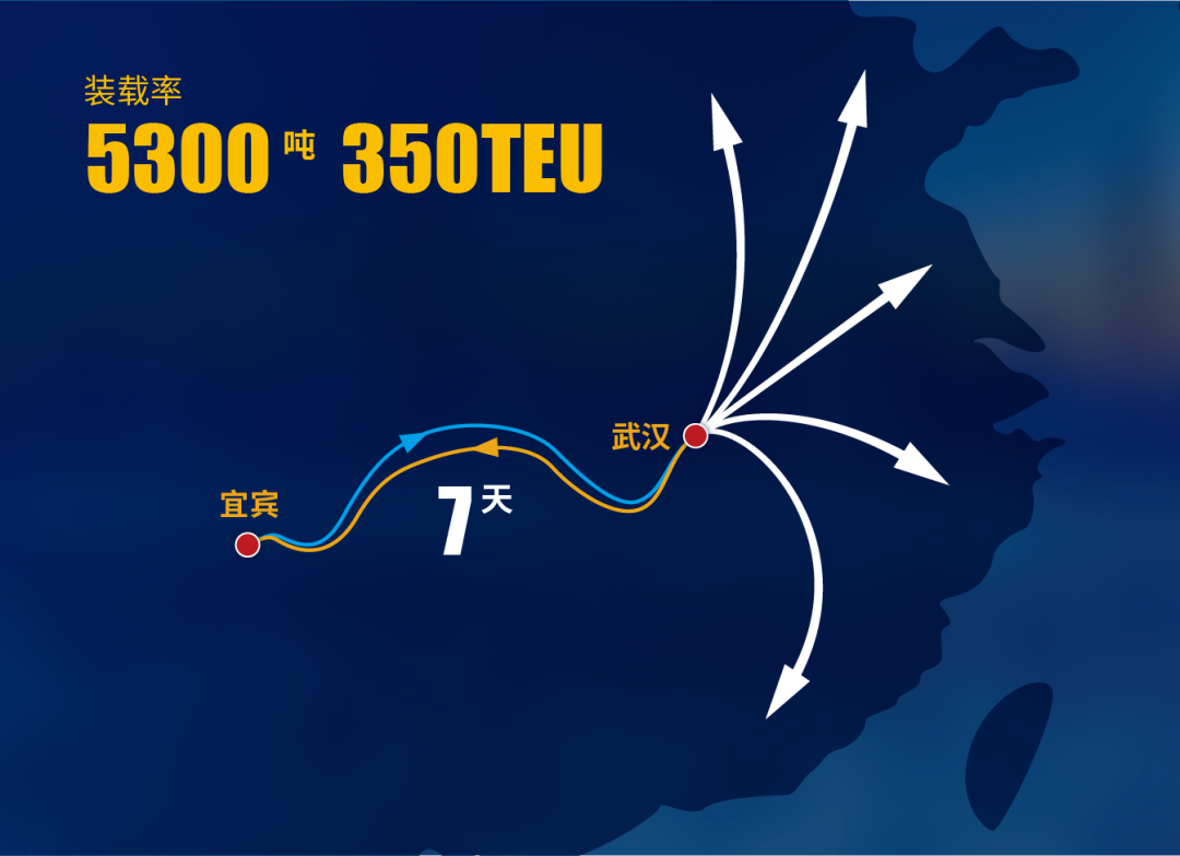 傳統(tǒng)的運輸路徑是宜賓港到重慶果園港,再由重慶果園港轉乘集裝箱班輪出口,多次靠泊裝卸,耗費時間長。同時,宜賓至重慶段航線屬典型的山區(qū)河流自然航段,彎曲狹窄、灘多流急、航道多變,導致了船舶通航能力受制,運輸時效無法掌控。為進一步提升長江上游腹地的輻射能力以及通航能力,經(jīng)泛亞航運反復調研,新開設了“宜賓港到武漢港”船運航線。相比于之前從宜賓啟航的貨船普遍容量為200TEU左右,新航線船舶裝載能達到350TEU的貨柜,裝載能力5300噸,裝載率得到了提升。同時,該航線在時效性上也得到改善,可在7天內直達武漢港,再接駁船出運。 新航線的開啟,實現(xiàn)了宜賓港與武漢港及外貿(mào)集裝箱運輸主干航線的無縫銜接,縮短了運輸時長,降低了物流成本。