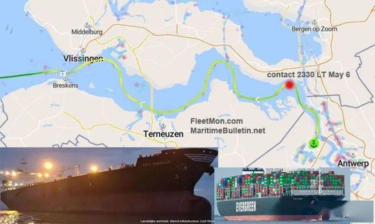當(dāng)?shù)貢r(shí)間5月6日23:30,長榮海運(yùn)旗下一型集裝箱船與油輪相撞,曾掛靠多個(gè)國內(nèi)海運(yùn)港口。一艘名為“EVER GLOBE”、運(yùn)力為20160TEU的超大型集裝箱船在荷蘭Bocht van Bath前的西斯海爾特河道與油輪“KRITI EMERALD”相撞。所幸本次事故并未造成任何的傷亡以及漏油。