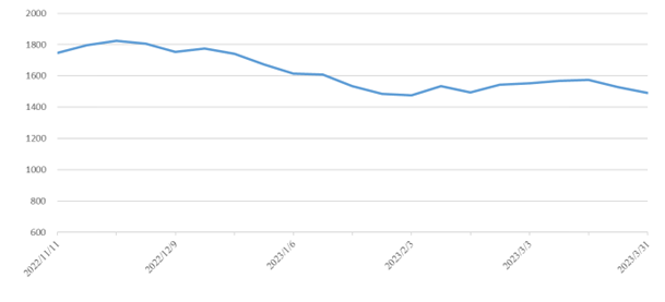 關鍵詞:內貿海運市場持續(xù)回落,本期(2023年3月25日至3月31日)中國內貿集裝箱運價指數(shù)呈現(xiàn)下跌趨勢
