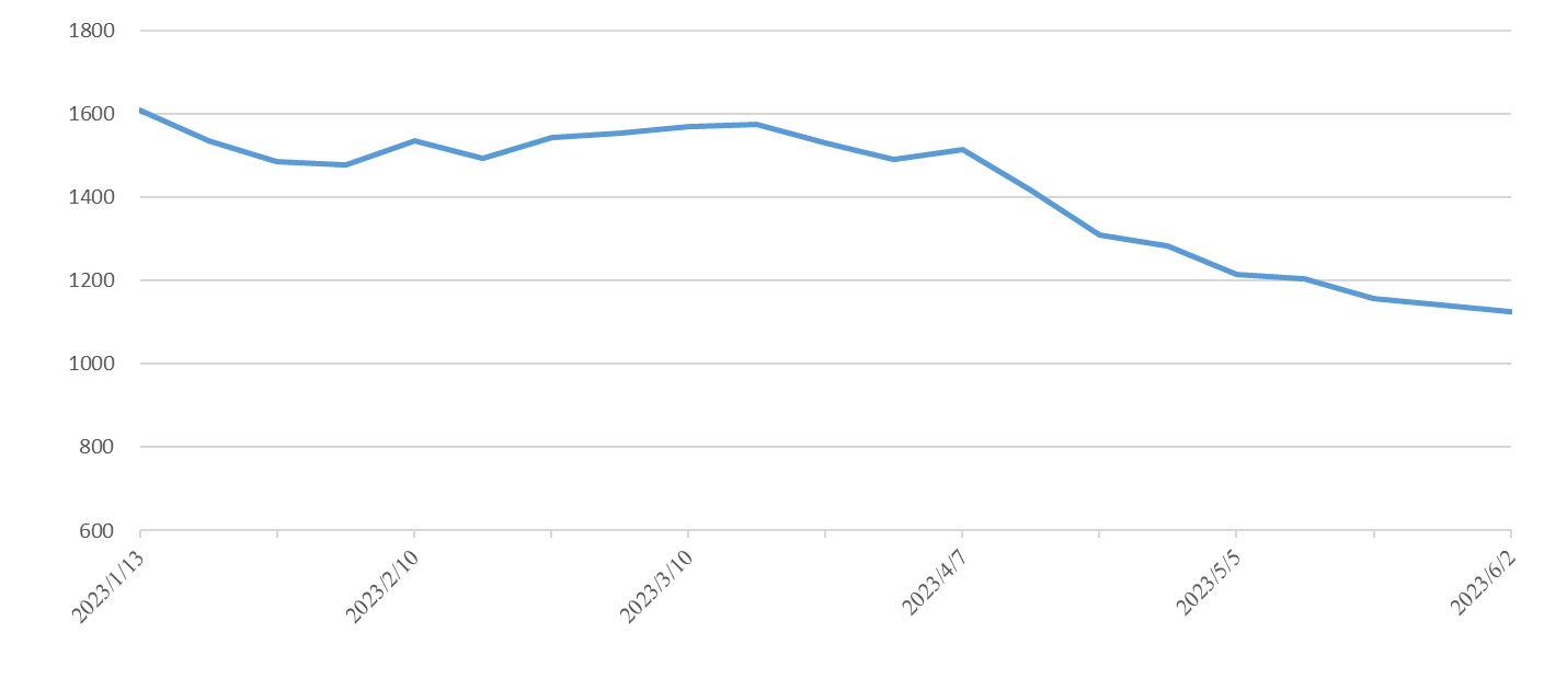 此外,華東指數(shù)報收1292點,環(huán)比下跌2點,跌幅0.15%;山東指數(shù)報收1096點,環(huán)比下跌54點,跌幅4.70%;福建指數(shù)報收1411點,環(huán)比下跌62點,跌幅4.21%。